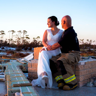 11 days post Hurricane Michael hit our little town is when this epic wedding took place. Cori and Bryon had their big day planned for months. Until all of this disaster and heartache. They had to cancel their wedding, but last minute changed their minds. A police office and a fire fighter who fell in love. Their love is stronger than a hurricane, so they decided to keep their wedding date and location. We were surrounded by their fellow officers and fire fighters as they said I do among the debris and on the backdrop of a stunning sky. This is just the kind of story our little town needs. A story of heroes and love that has overcome all and triumphed. I'm so blessed to have been a part of their special day and I know their story will encourage so many others to love stronger than any storm ever could.